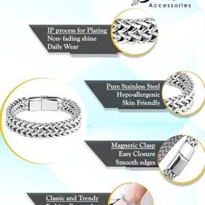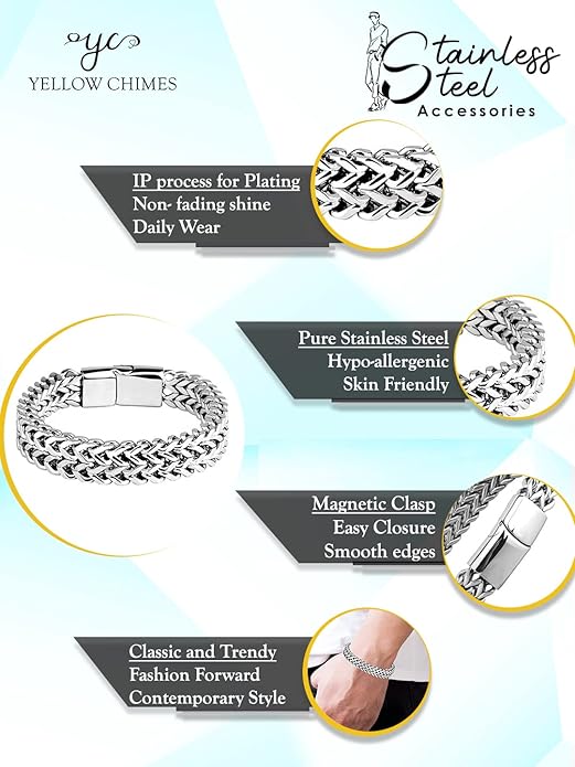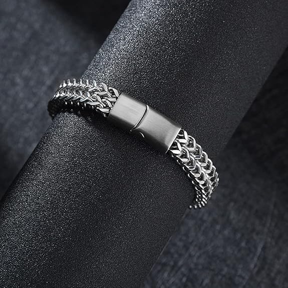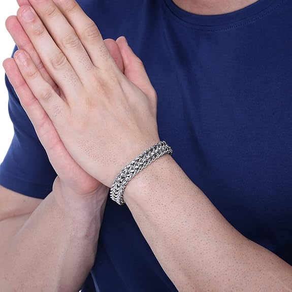 Bracelets for Men and Boys Fashion Silver Bracelet for Men | Silver Toned Stainless Steel Dual Curb Chain Bracelet for Men