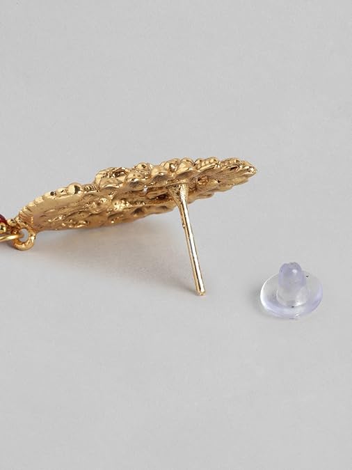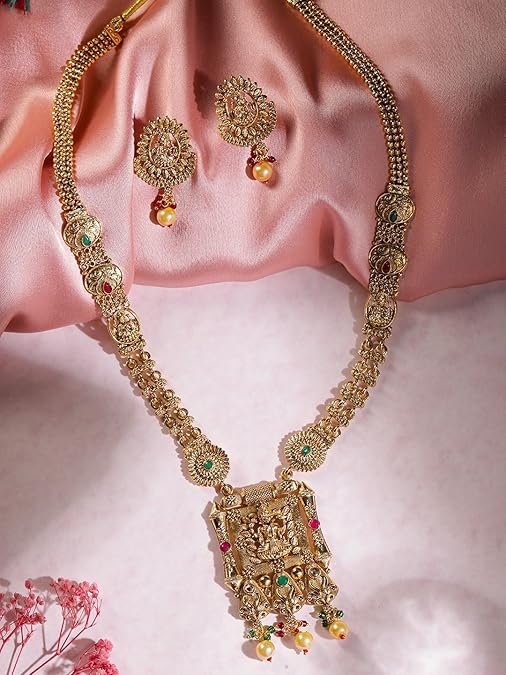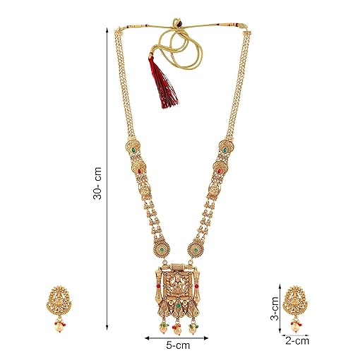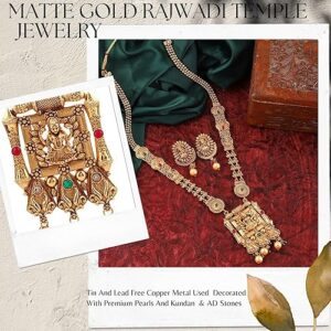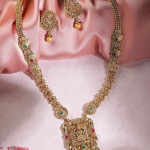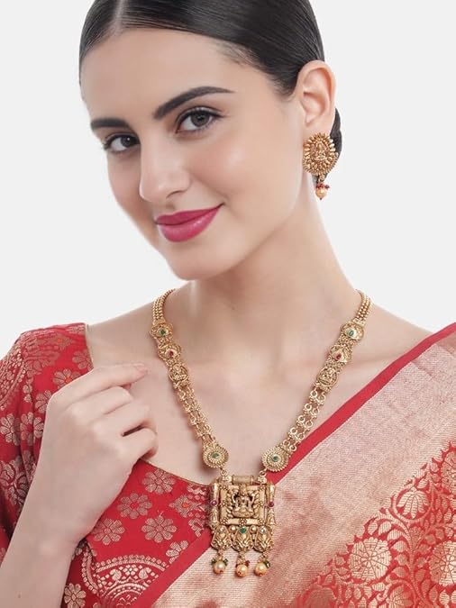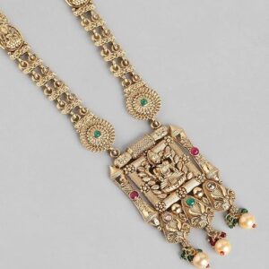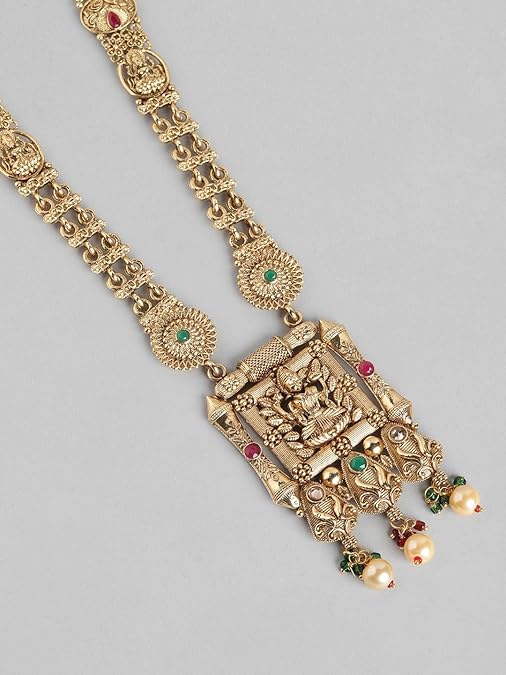 Matte Gold Maa Lakshmi Motif Kempu Stone Necklace Long Rani Haar Jewellery