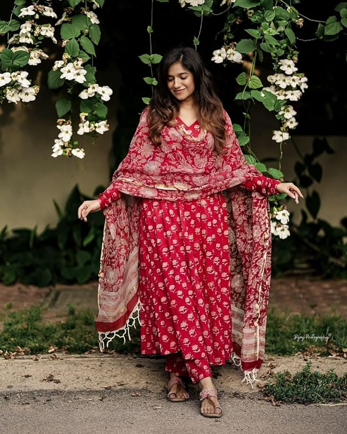 ``` Women Printed Anarkali Kurta Pant With Dupatta - Mcaps Ventures Pvt. Ltd. ```