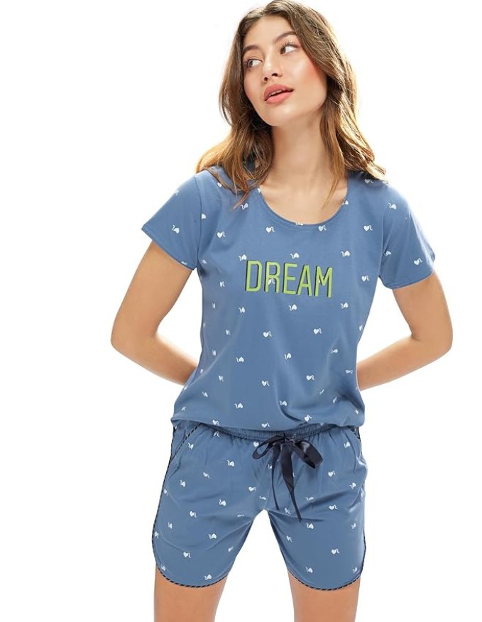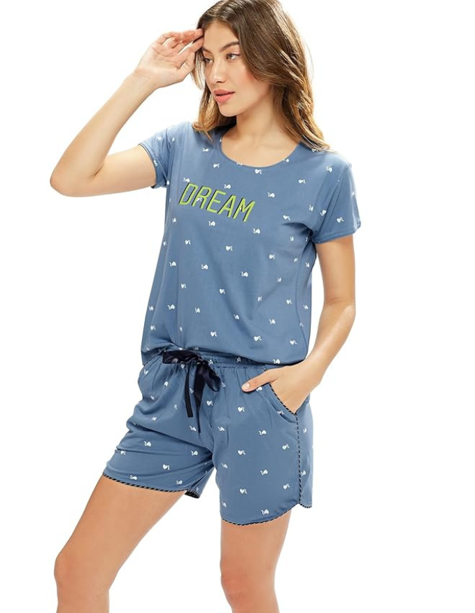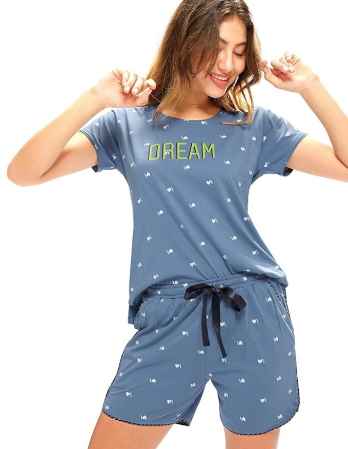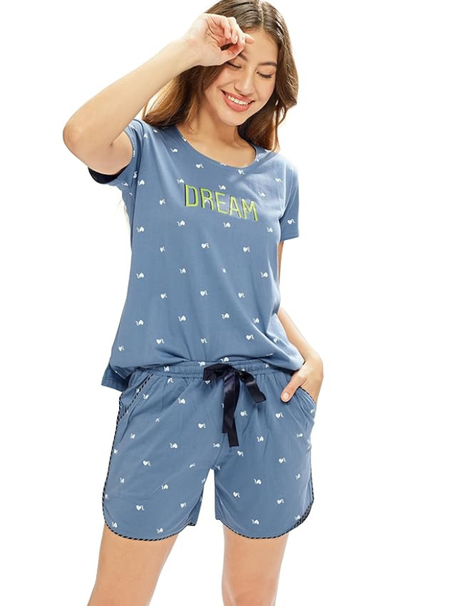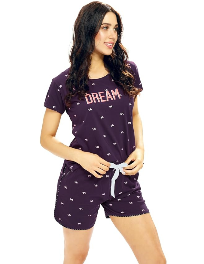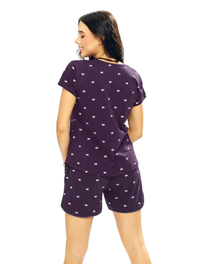 Women’s Cotton Printed Top-Shorts Nightwear Set